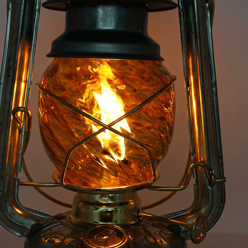 塗装ではなく色ガラスを使用して火を灯すと黄金が輝くのようなイメージに。