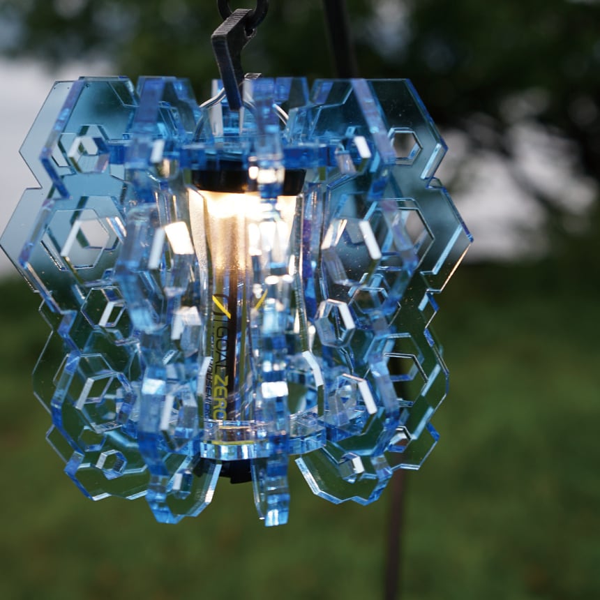クリアにこだわり、蝶を模したデザインのアクリルシェード。
