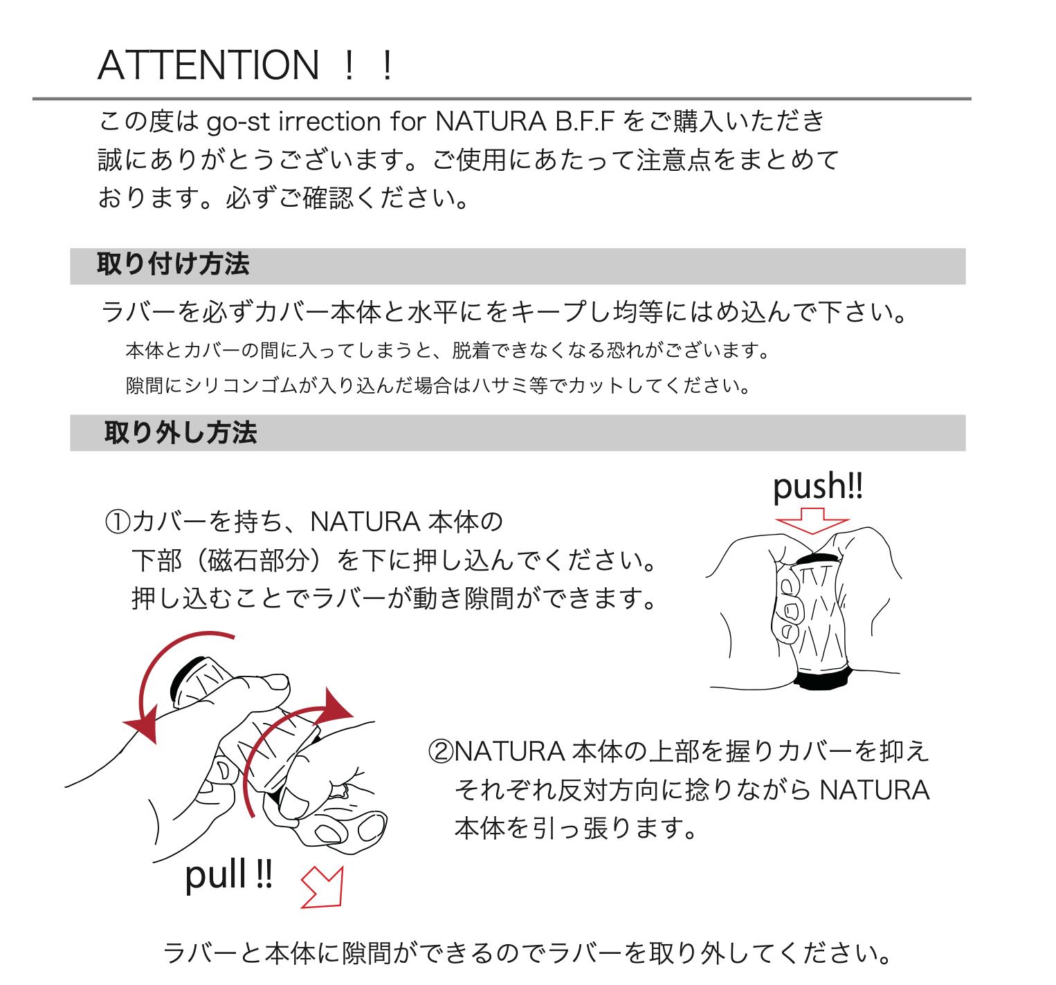①カバーをもち、NATURA本体の下部(磁石部分)を下に押し込んでください。