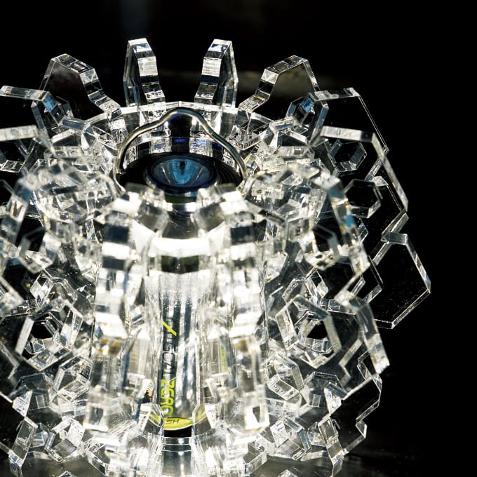 クリアにこだわり、蝶を模したデザインのアクリルシェード。