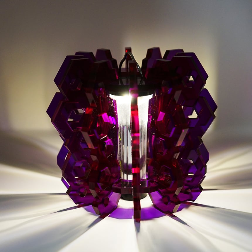 クリアにこだわり、蝶を模したデザインのアクリルシェード。