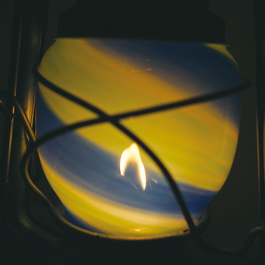 火を灯せば辺りを柔らかい光で包み、ブルーのラインが美しく光る。